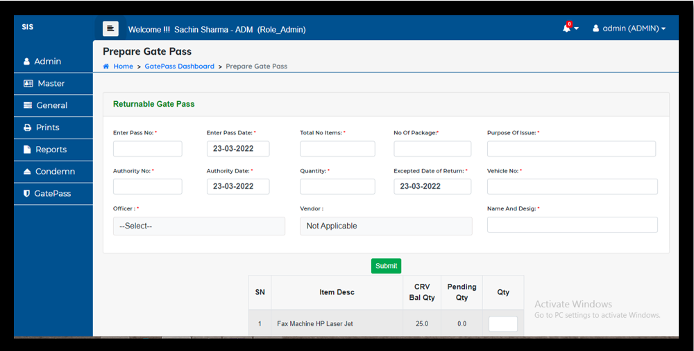 The Gate Pass process will be done for Returnable and Non-Returnable Items. For Non-Returnable Items further distribution deduction will be done.